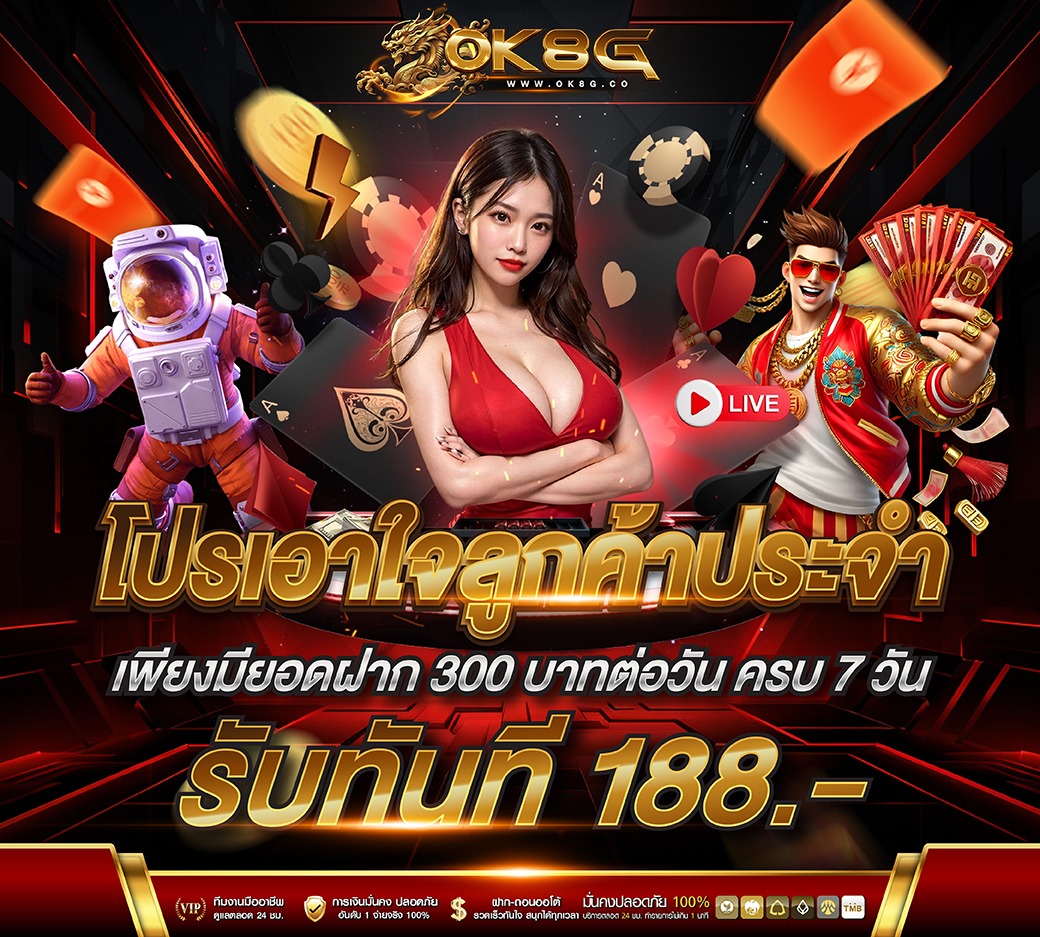 OK8G มุ่งมั่นที่จะมอบประสบการณ์การเดิมพันออนไลน์ที่คุ้มค่าที่สุดให้กับสมาชิกทุกท่าน ด้วยโปรโมชั่นหลากหลายที่ออกแบบมาเพื่อตอบสนองความต้องการของทั้งสมาชิกใหม่และสมาชิกเก่า โดยเฉพาะอย่างยิ่ง สมาชิกใหม่จะได้รับข้อเสนอพิเศษในการเริ่มต้นด้วยโบนัสต้อนรับสูงสุด 100% สำหรับการฝากเงินครั้งแรก ซึ่งช่วยเพิ่มโอกาสในการสร้างผลกำไรตั้งแต่เริ่มต้น